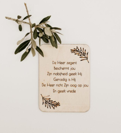 Houten kaartje "De Heer zegent"Kaartjes van hout met inspirerende bijbelteksten.