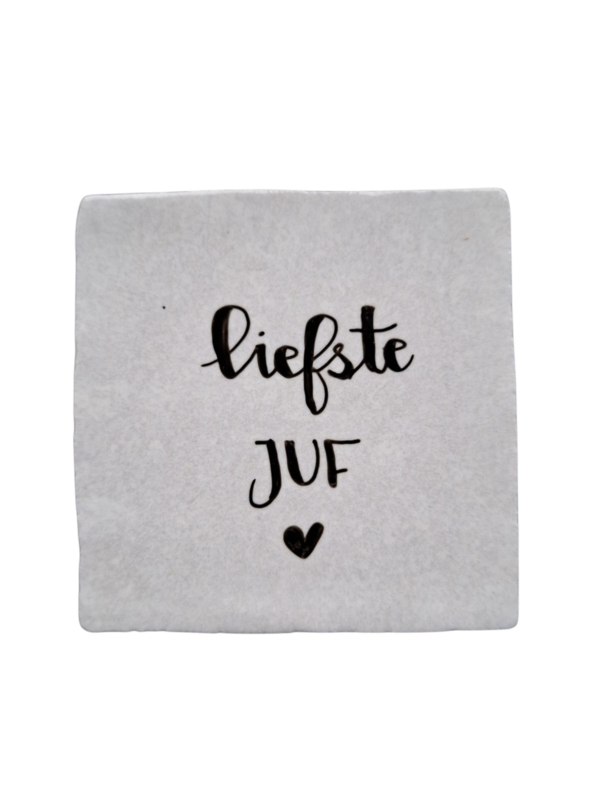 Wit tegeltje Liefste juf€ 7,99